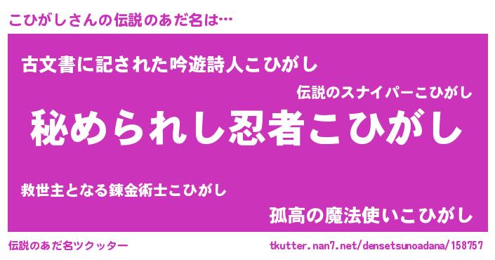 | ヒーロー風カッコイイあだ名 | 『ウルトラこひがしマン』『ネオコヒガシ』 |
