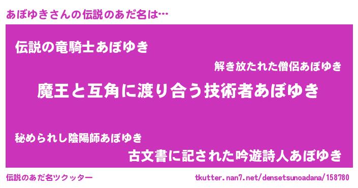| ヒーロー風カッコイイあだ名 | 『愛の使者あぼゆき』『仮面アボダー』 |