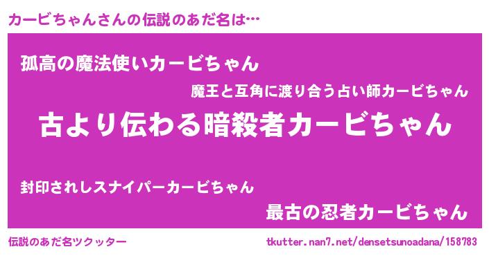 | 胡散臭い通販商品みたいなあだ名 | 『来世でも幸せになれる健康食品…その名も「カービちゃん」』 |