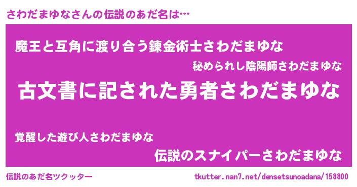 | 意味不明あだ名 | 『永久保存さわだまゆな』 |