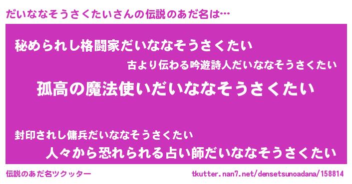 | 胡散臭い通販商品みたいなあだ名 | 『信頼と実績のサプリメント…その名も「だいななそうさくたい」』 |