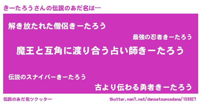 | 意味不明あだ名 | 『たけのこ科きーたろう属』 |