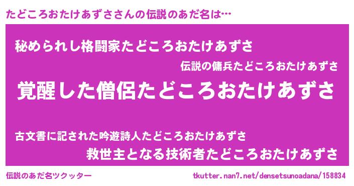 | 欧米人風あだ名 | 『ウサインたどころおたけあずさ』 |