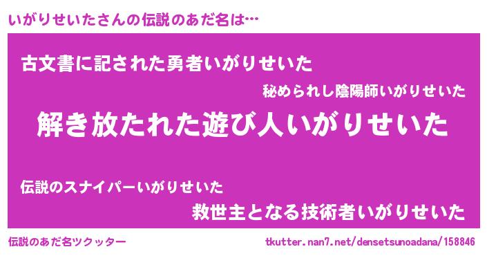 | ヒーロー風カッコイイあだ名 | 『幻影騎士イガ』『ネオイガリセイタ』 |