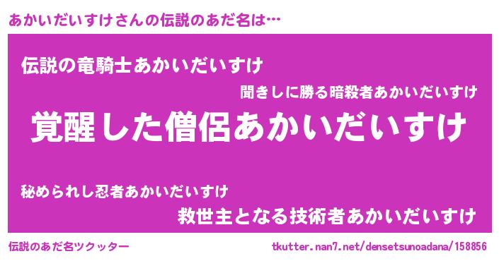 | 意味不明あだ名 | 『住所不定無職あかいだいすけ(53歳)』 |