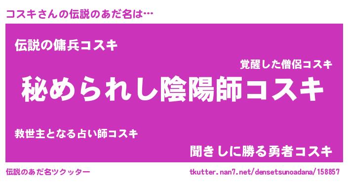 | 男性向けラノベタイトル風あだ名 | 『緋弾のコスキ』『コスキスレイヤー』 |