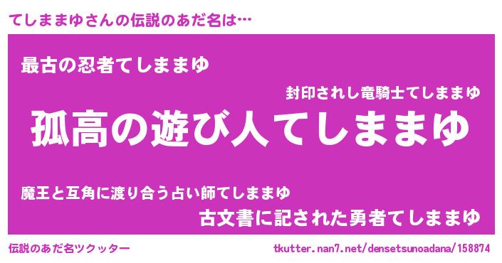 | 女子向けラノベタイトル風あだ名 | 『てしままゆなんてお断りですっ。』 |