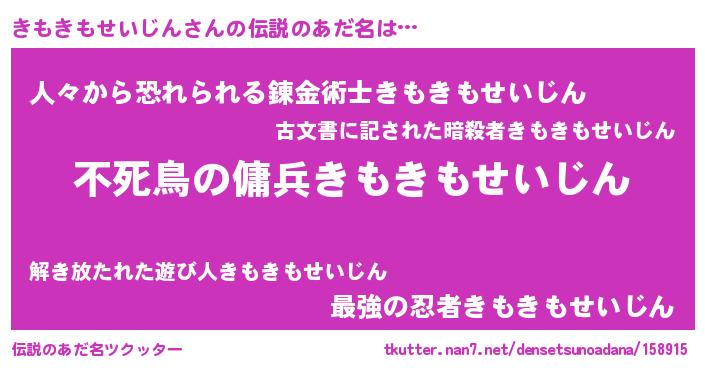 | ヒーロー風カッコイイあだ名 | 『スーパーキモキモセイジン』 |