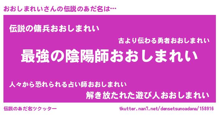 | ファンタジー風あだ名 | 『エターナルオオシマレイー』 |