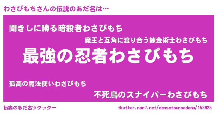| 胡散臭い通販商品みたいなあだ名 | 『運命の人と巡り会える高級そうな壺…その名も「わさびもち」』 |