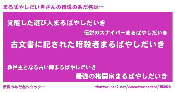 ヘコむあだ名 | 『まるばやしだいき(笑)』『まるぷりん』 |