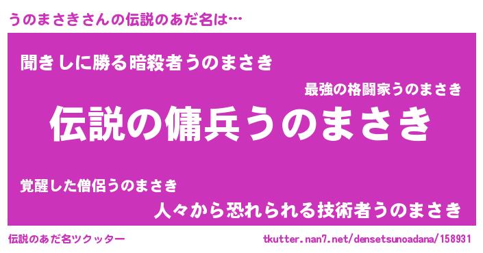 | 意味不明あだ名 | 『ペロリンうのまさき』『自称うのまさき』 |