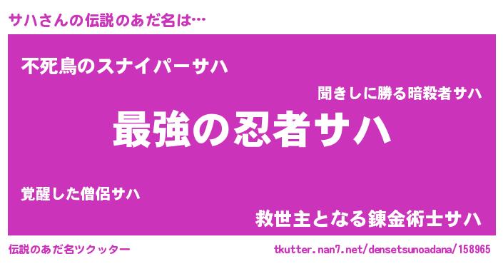 | ヒーロー風カッコイイあだ名 | 『ウルトラサハマン』『仮面サハダー』 |