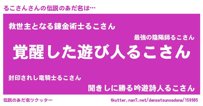 | ヒーロー風カッコイイあだ名 | 『天弓騎士ルコ』『天空の使者るこさん』 |