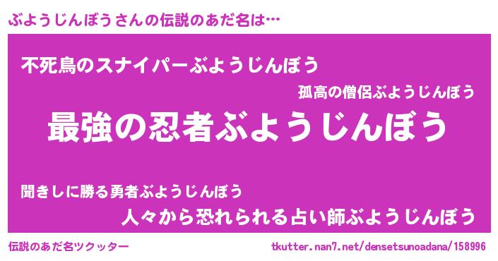 | ファンタジー風あだ名 | 『エターナルブヨウジンボウー』 |