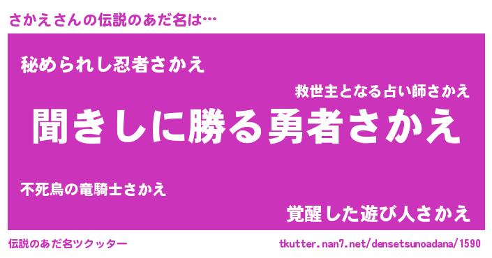 | 意味不明あだ名 | 『自称さかえ』『永久保存さかえ』 |