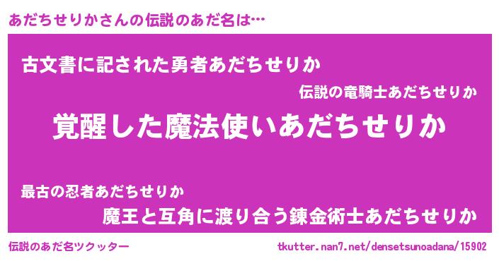 | 意味不明あだ名 | 『住所不定無職あだちせりか(9歳)』 |