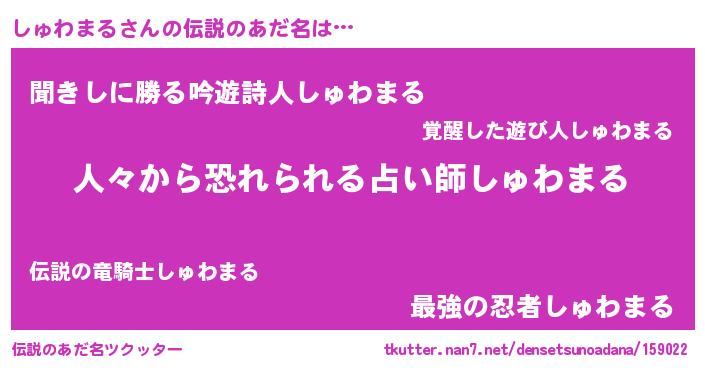 | ヘコむあだ名 | 『しゅわまる(爆)』『つくし』 |