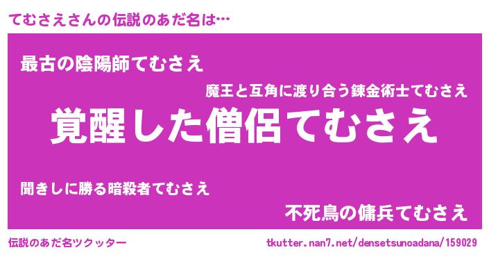 | 女子向けラノベタイトル風あだ名 | 『てむさえ様がみてる』 |