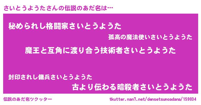 | 意味不明あだ名 | 『住所不定無職さいとうようた(3歳)』 |