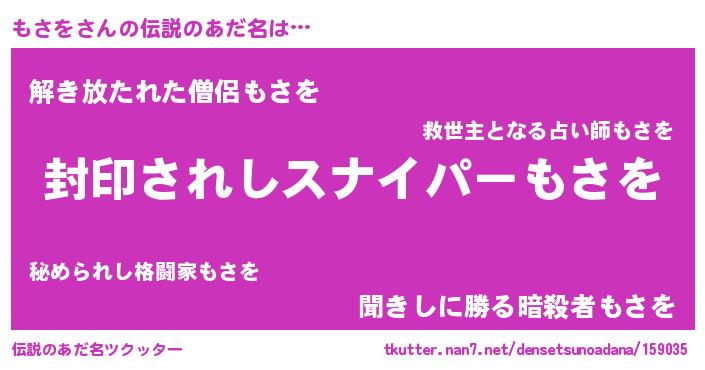 | ヒーロー風カッコイイあだ名 | 『スーパーモサヲ』『天弓騎士モサ』 |