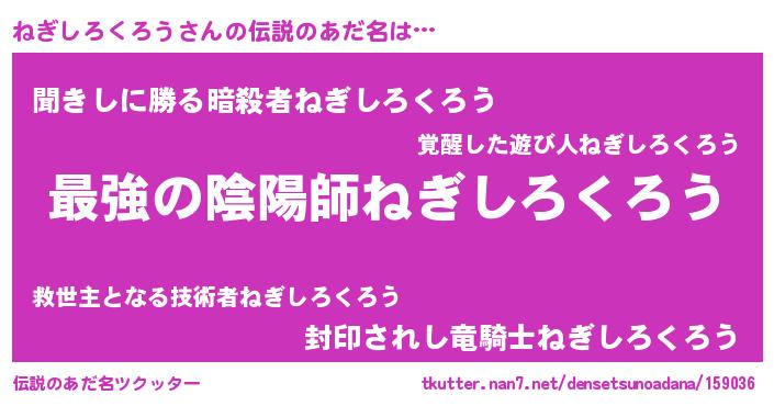 | ヒーロー風カッコイイあだ名 | 『ウルトラねぎしろくろうマン』 |
