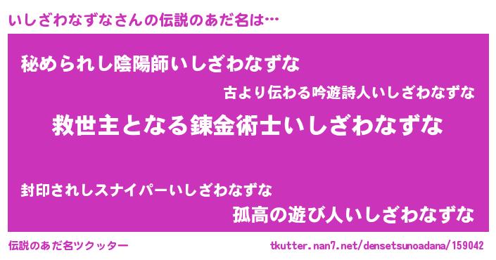| 胡散臭い通販商品みたいなあだ名 | 『あなたにだけ特別に提供する世界で10本だけ現存している希少なブランデー…その名も「いしざわなずな」』 |