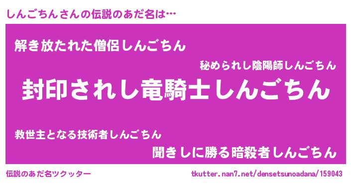 | ヒーロー風カッコイイあだ名 | 『スーパーシンゴチン』『幻影騎士シン』 |