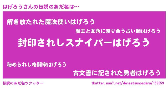 | 意味不明あだ名 | 『ペロリンはげろう』『永久保存はげろう』 |