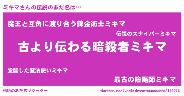 | 胡散臭い通販商品みたいなあだ名 | 『来世でも幸せになれる健康食品…その名も「ミキマ」』 |