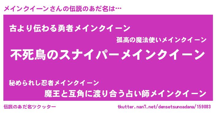 | ヘコむあだ名 | 『メイっふぃ~』『メインクイーン(小並感)』 |