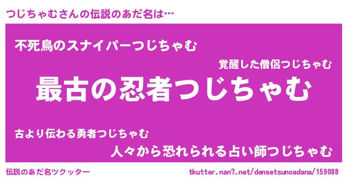 | 男性向けラノベタイトル風あだ名 | 『魔弾の王とつじちゃむ』 |