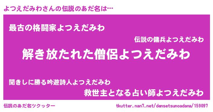 | 意味不明あだ名 | 『自称よつえだみわ』 |