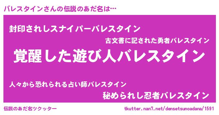| ヒーロー風カッコイイあだ名 | 『幻影騎士バレ』『スーパーバレスタイン』 |