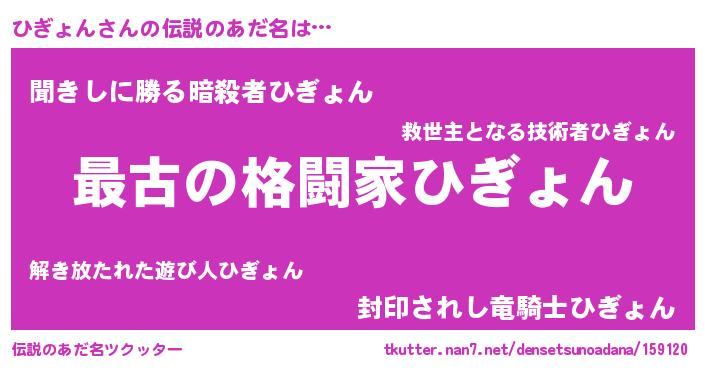 | ヒーロー風カッコイイあだ名 | 『仮面ヒギダー』『ウルトラひぎょんマン』 |