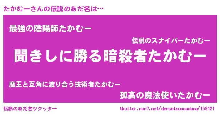 | 意味不明あだ名 | 『永久保存たかむー』『自称たかむー』 |