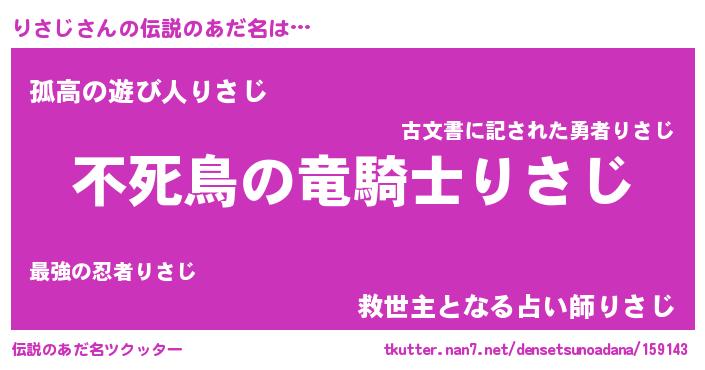 | 男性向けラノベタイトル風あだ名 | 『リサジアートオンライン』 |