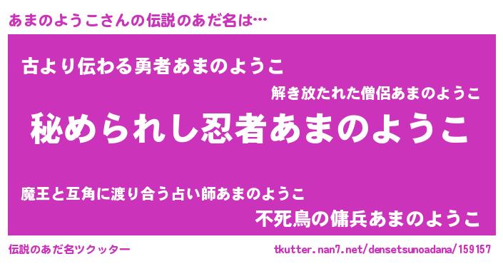 | 男性向けラノベタイトル風あだ名 | 『魔法科高校のあまのようこ』 |