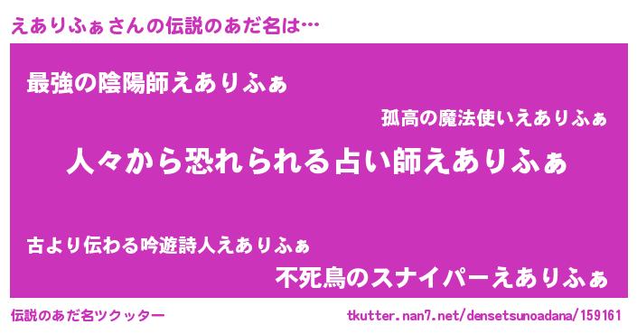 | 男性向けラノベタイトル風あだ名 | 『魔法科高校のえありふぁ』 |
