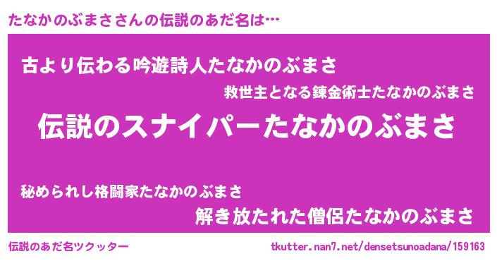 | ヘコむあだ名 | 『たなっふぃ~』『たなかのぶまさ(苦笑)』 |