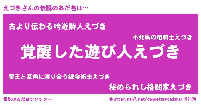 | ヒーロー風カッコイイあだ名 | 『炎刃騎士エヅ』『ウルトラ戦士エヅキ』 |