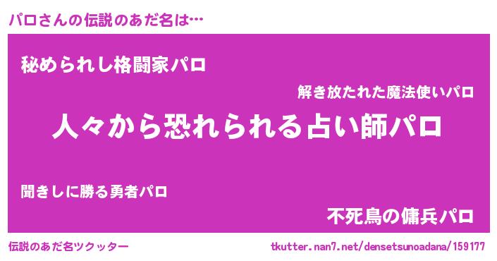 | 女子向けラノベタイトル風あだ名 | 『パロアンティーク』『死神パロの再婚』 |