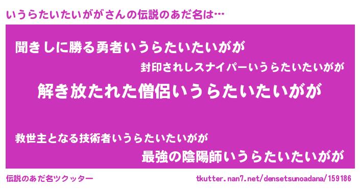 | ポケモン風あだ名 | 『ヒイウラタイタイガガ』『イウセウス』 |