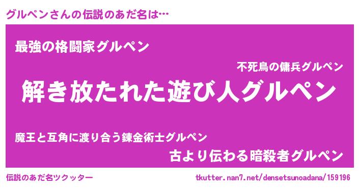 | 意味不明あだ名 | 『とにかく怪しいグルペン』 |