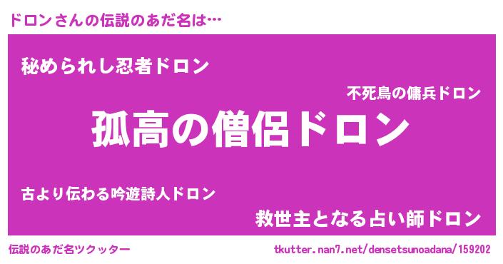 | ヒーロー風カッコイイあだ名 | 『暗黒騎士ドロ』『究極戦士ドロン』 |