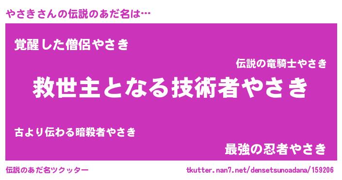 | ヒーロー風カッコイイあだ名 | 『慈愛の使者やさき』『仮面ヤサダー』 |