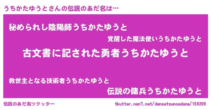 | ヒーロー風カッコイイあだ名 | 『仮面ウチダー』『ネオウチカタユウト』 |