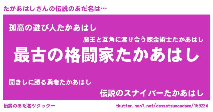 | ポケモン風あだ名 | 『タカアダネ』『ヒタカアハシ』 |