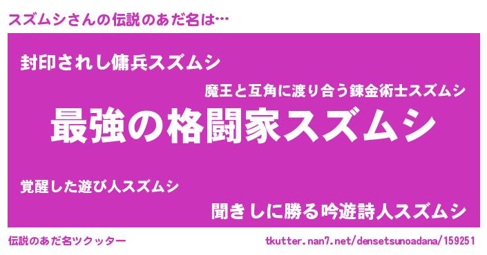 | ファンタジー風あだ名 | 『エターナルスズムシー』『スズフェル』 |