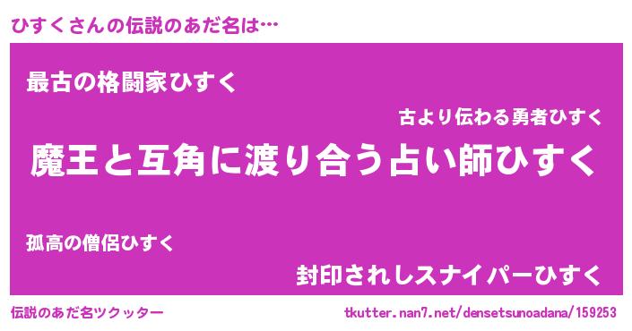 | ファンタジー風あだ名 | 『クインヒット』『エターナルヒスクー』 |